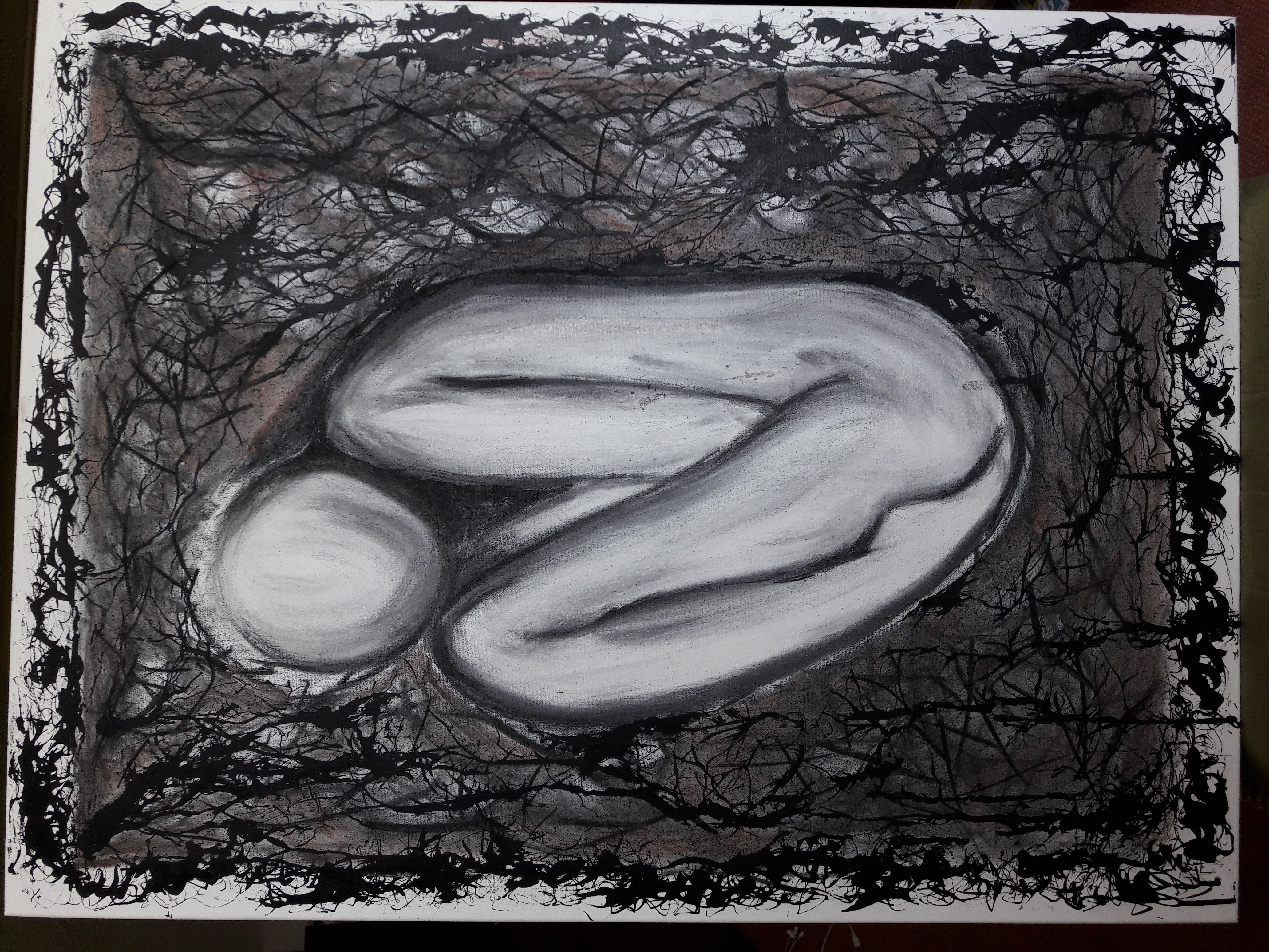 crouching in a fetal ball