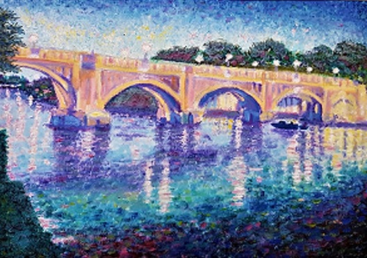 The painting is entitled Richmond Bridge at Twilight, by the artist and © Claire Corbett. Another poem in response to this painting was written by Charles Jobson.